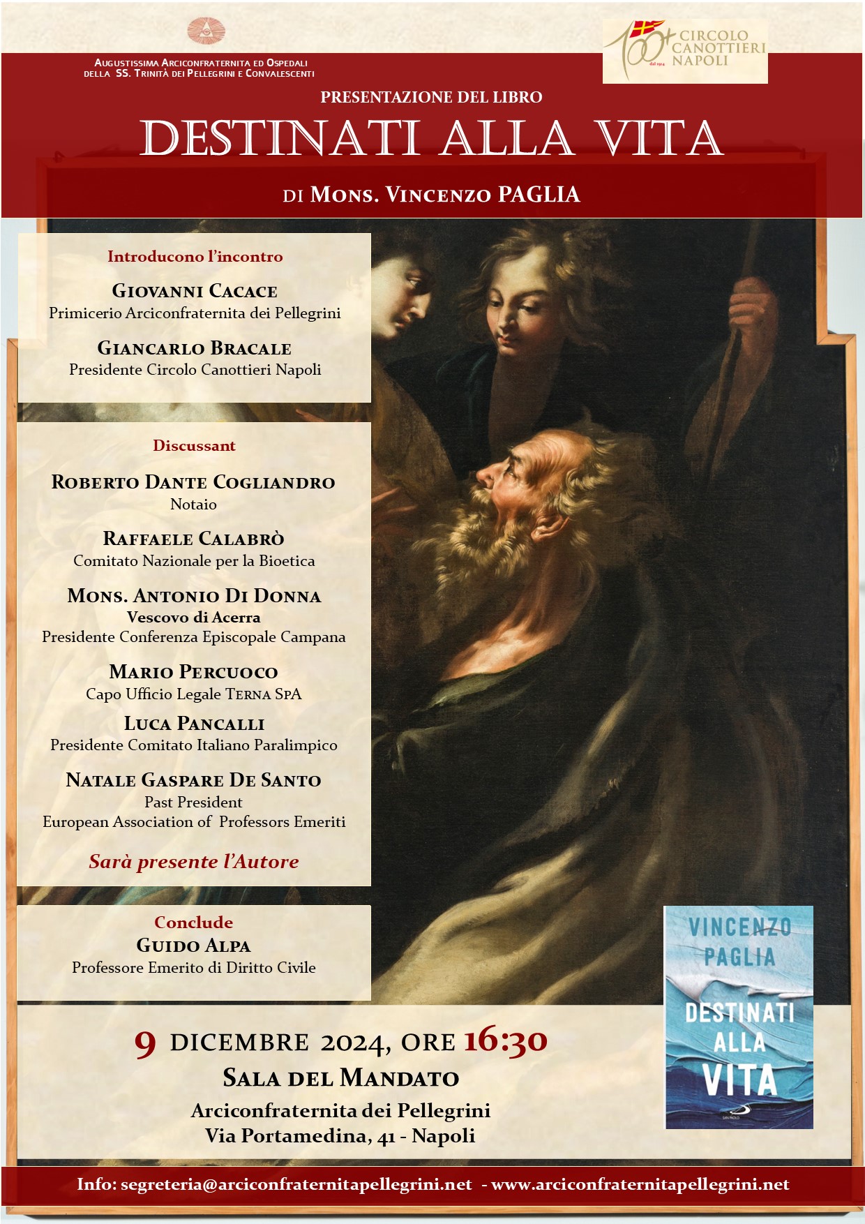 GeneralePresentazione del libro DESTINATI ALLA VITA di Mons. Vincenzo PAGLIA, 9 dicembre, ore 16:30 07 Dic La registrazione completa dell’incontro cliccando qui e nel canale YouTube “Arciconfraternita dei Pellegrini” Allegati 20241209_Paglia